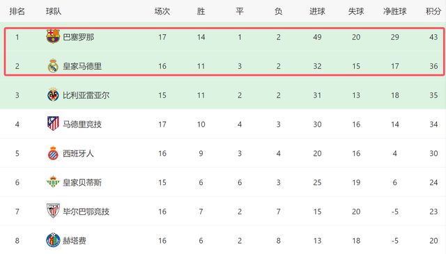 • 西甲最新积分战报巴萨豪夺7连胜领先皇马7分黑马赢球紧追马竞